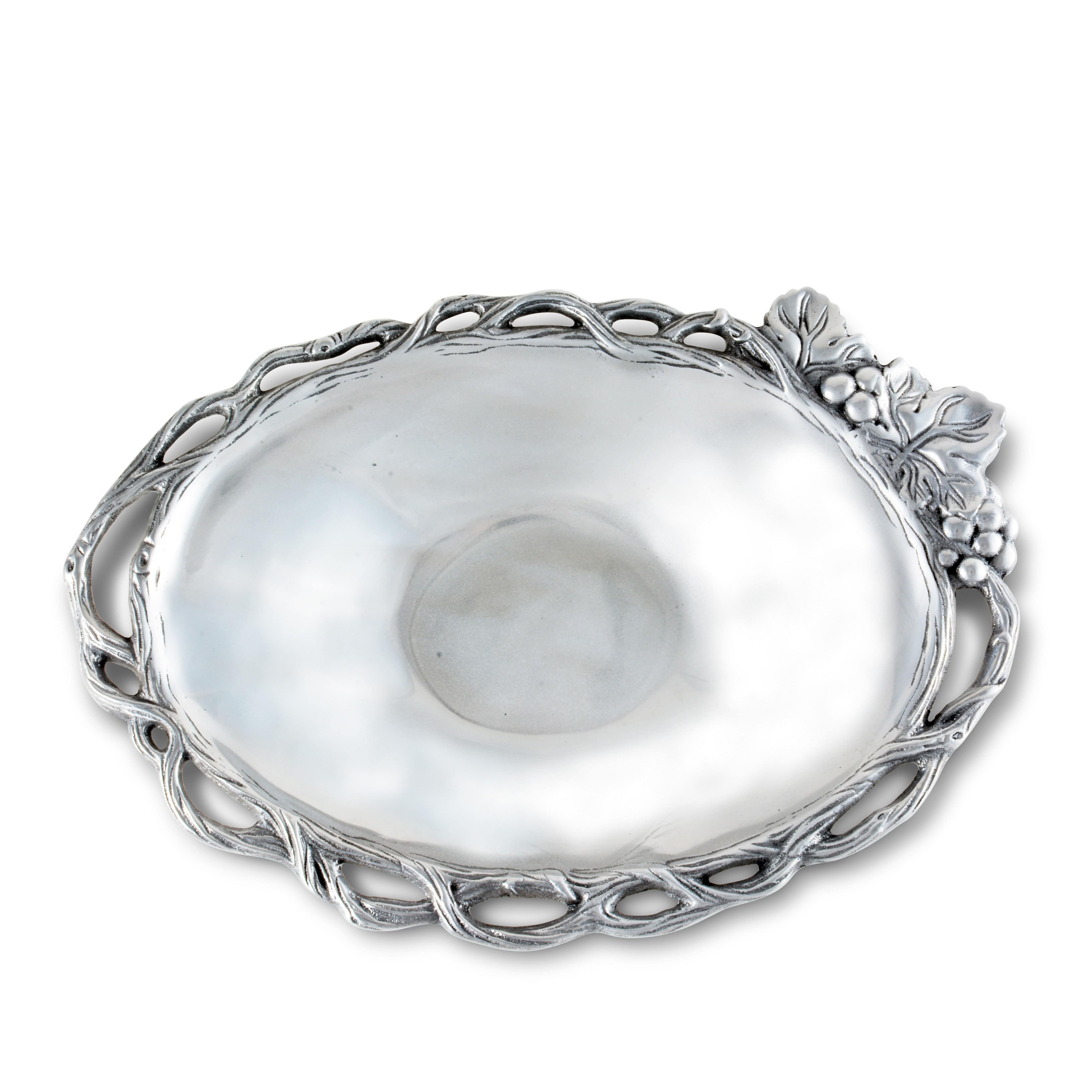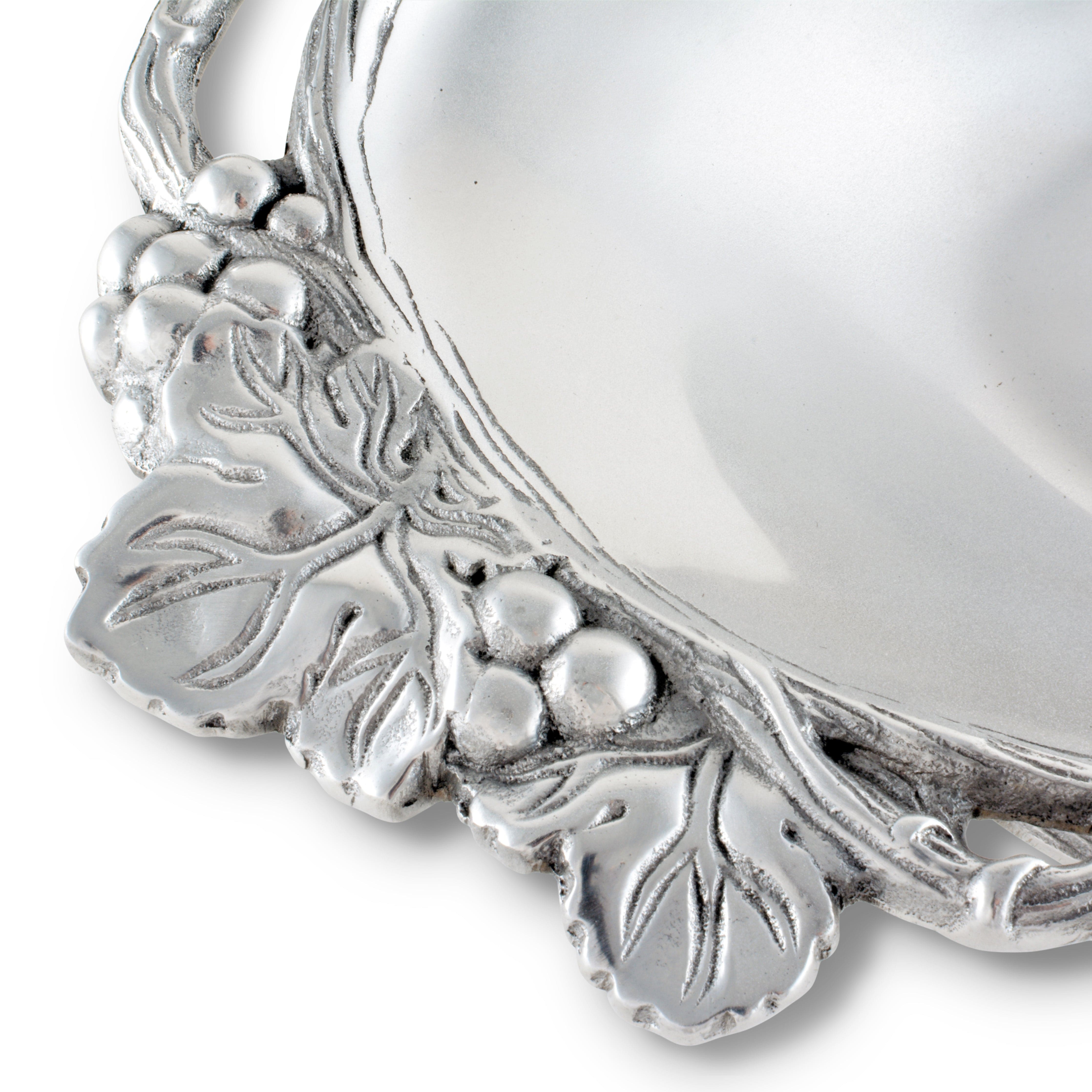 Create a stunning dining experience with the Grape collection's vegetable dish, suitable for all occasions. Its elegant design and intricate detailing make it a perfect wedding gift. Arthur Court's Vegetable Dish features unique aluminum craftsmanship, adding a touch of luxury to your table settings. Ideal for serving your favorite vegetables, it's a versatile piece that fits well with any dinnerware. Crafted with love and precision, this vegetable dish exemplifies Arthur Court's commitment to superior quality and unique design.