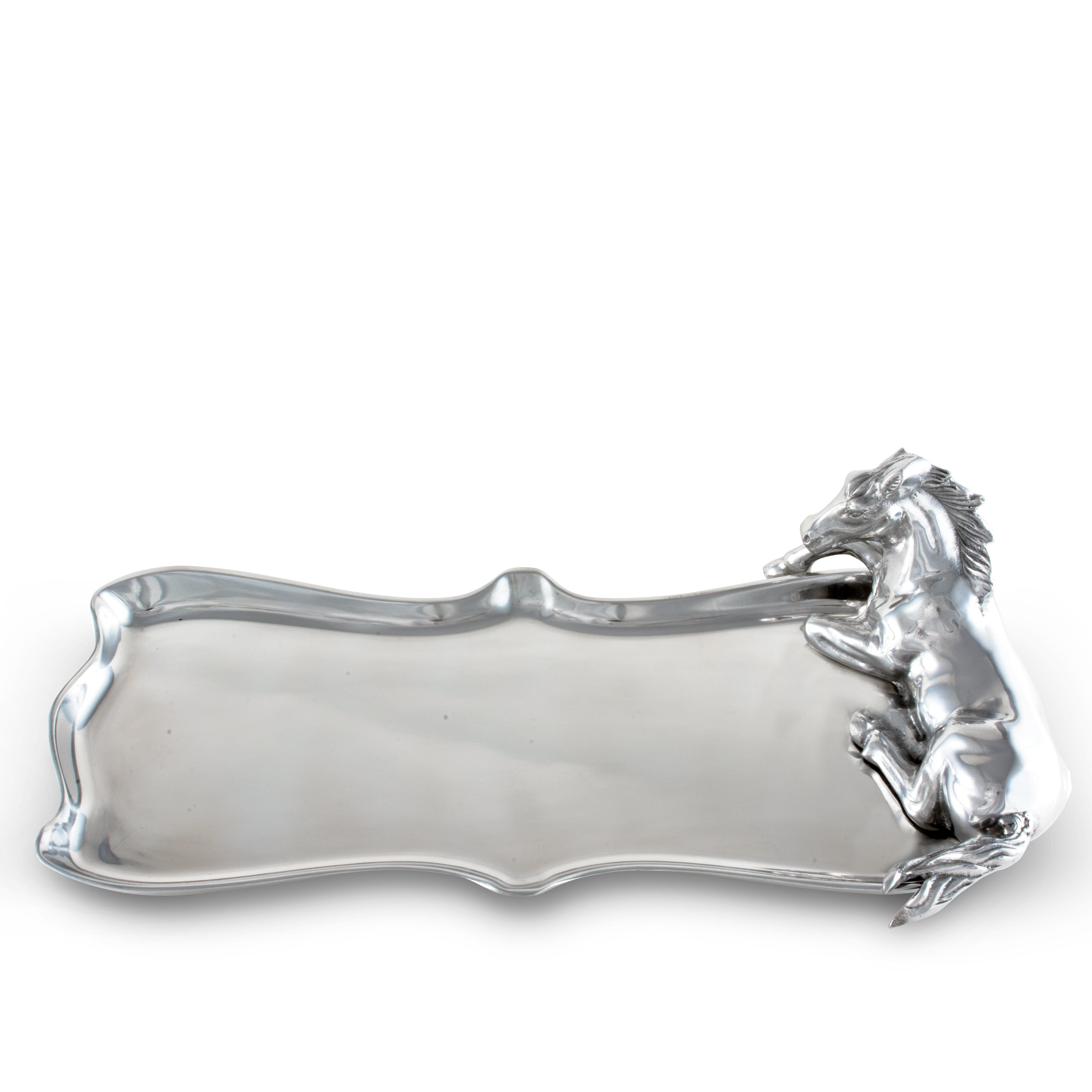 Experience the exquisite craftsmanship of the Arthur Court Horse Figural Platter. This elegant entertaining piece, made of high quality alloy, is designed in the likeness of a majestic steed, embodying the spirit of equestrian beauty. Whether you're hosting an equestrian-themed event or simply adding a work of art to your home, Arthur Court's Horse Figural Platter is sure to captivate. It's the ideal housewarming gift for horse enthusiasts or anyone who appreciates fine, lasting quality. Its versatility extends beyond serveware into a stunning piece of decor that reflects your taste and style. With its detailed design and durable build, this platter will be a conversation piece for years to come.