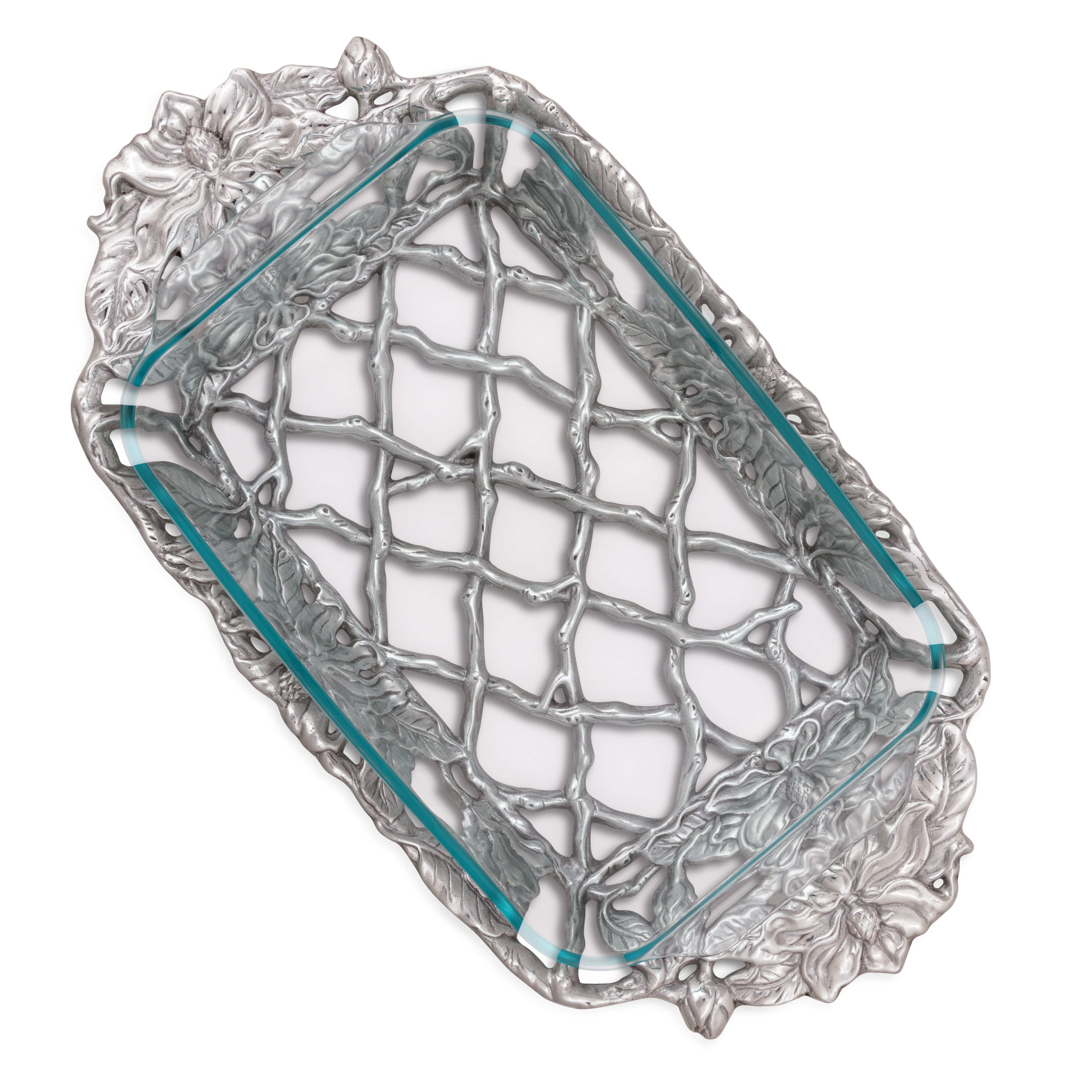 Embellish your festive table with our High-quality Flora Collection Pyrex Holder - Ideal for Thanksgiving Centerpiece. Elegantly crafted, this holder features the Floral Magnolia Pyrex Holder 3qt - a durable material with versatile magnolia design, adaptable for various festive gatherings. Part of the Arthur Court Flora Collection, this Versatile Magnolia Design Pyrex Holder ensures a charming and warm atmosphere for family dinners. Its rich and ornate detailing displays extraordinary craftsmanship, delicately combining aesthetics with functionality. Don't miss out on this durable, versatile, and stunning piece.