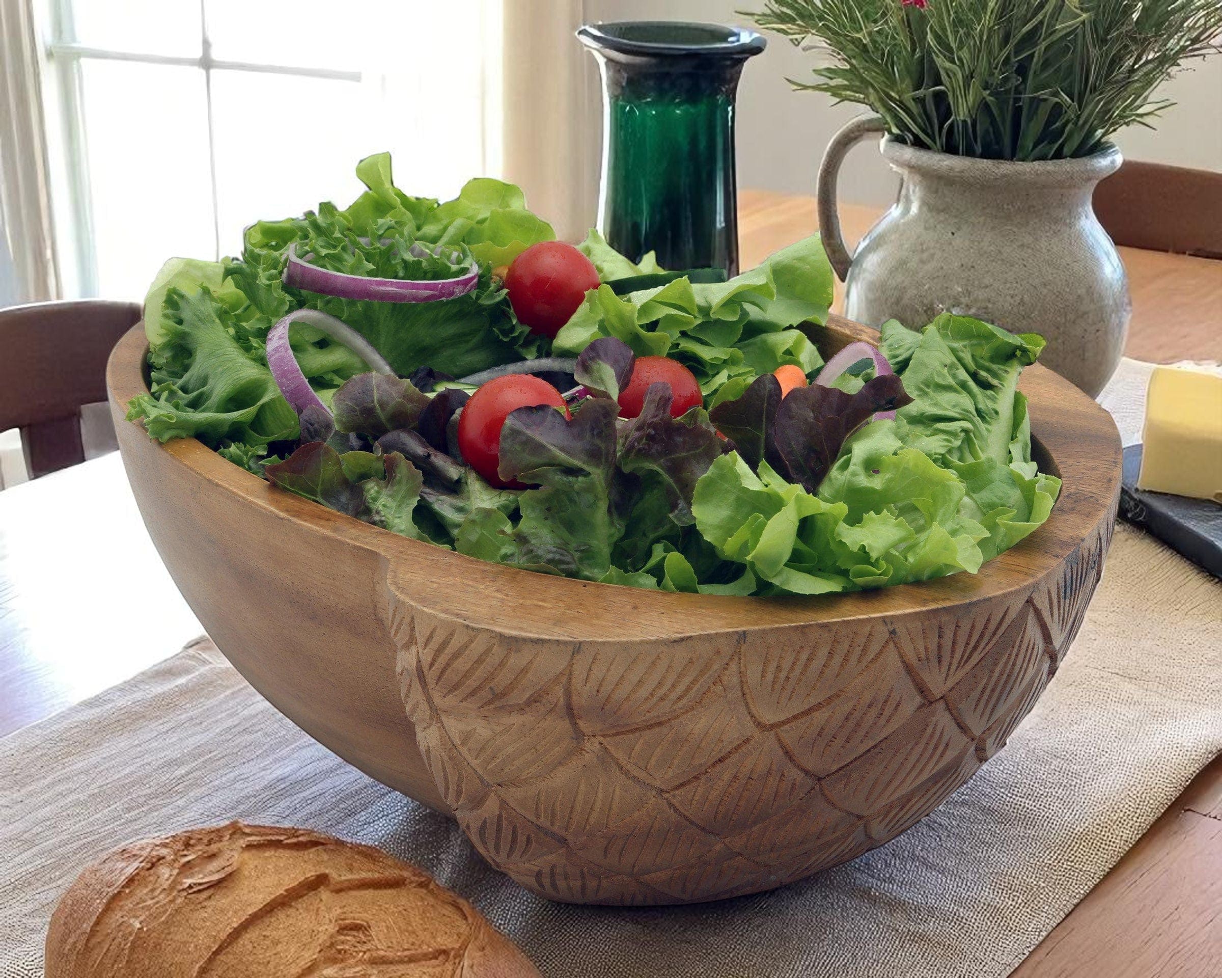 Care Guide: Hand wash your acacia wood salad bowl with mild dish soap and dry it immediately. Avoid using harsh chemicals or dishwashers. Apply food-safe oil occasionally, and store it in a cool, dry place away from direct sunlight or heat sources.