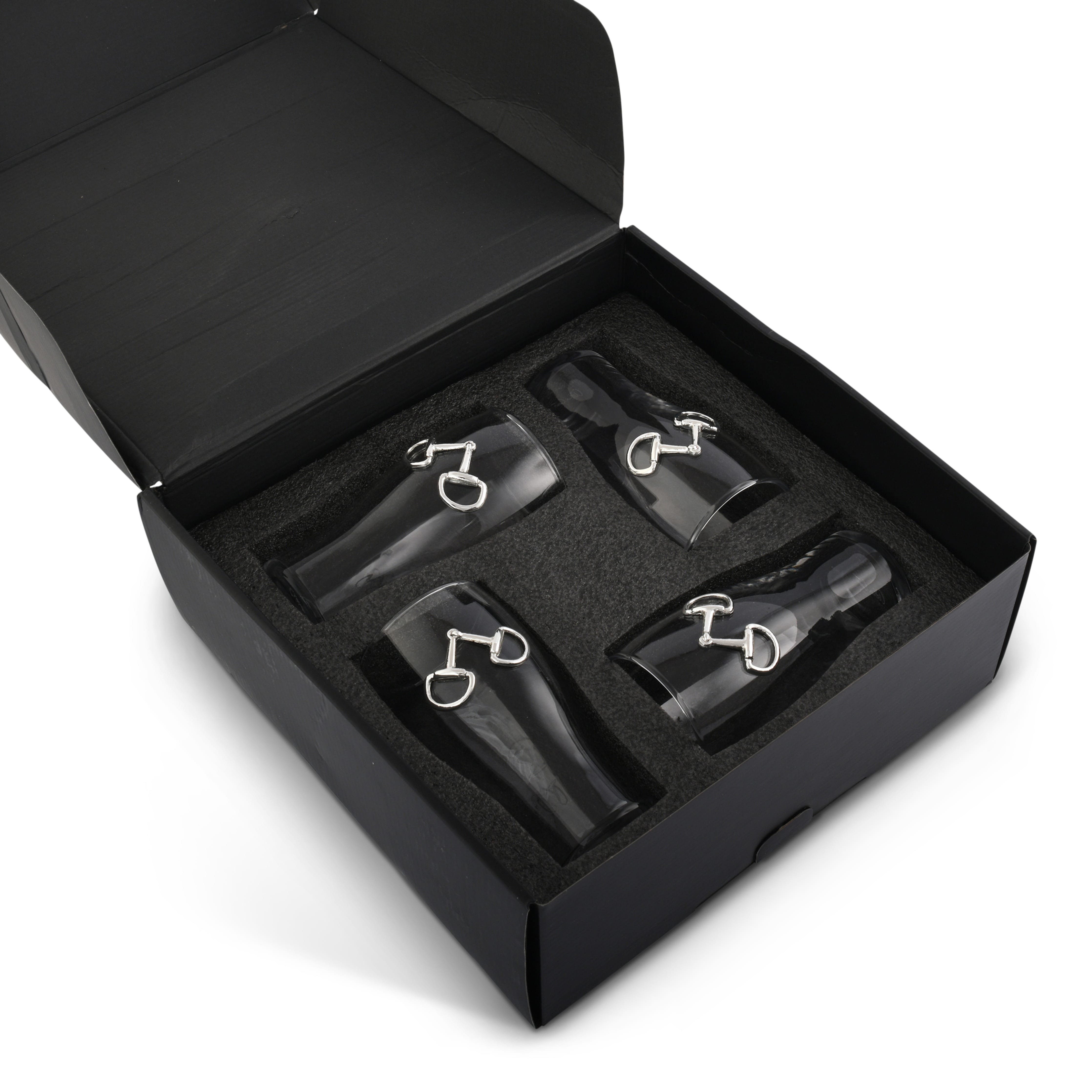 Celebrate your love of equestrian style with this set of four beer pint glasses from Arthur Court. Each 18-ounce glass is adorned with a detailed equestrian bit medallion, crafted in signature aluminum alloy for a refined, rustic touch. Perfect for horse lovers and beer enthusiasts alike, these glasses bring a unique charm to any gathering. Pair them with other equestrian-themed pieces from Arthur Court for a coordinated and elegant collection.