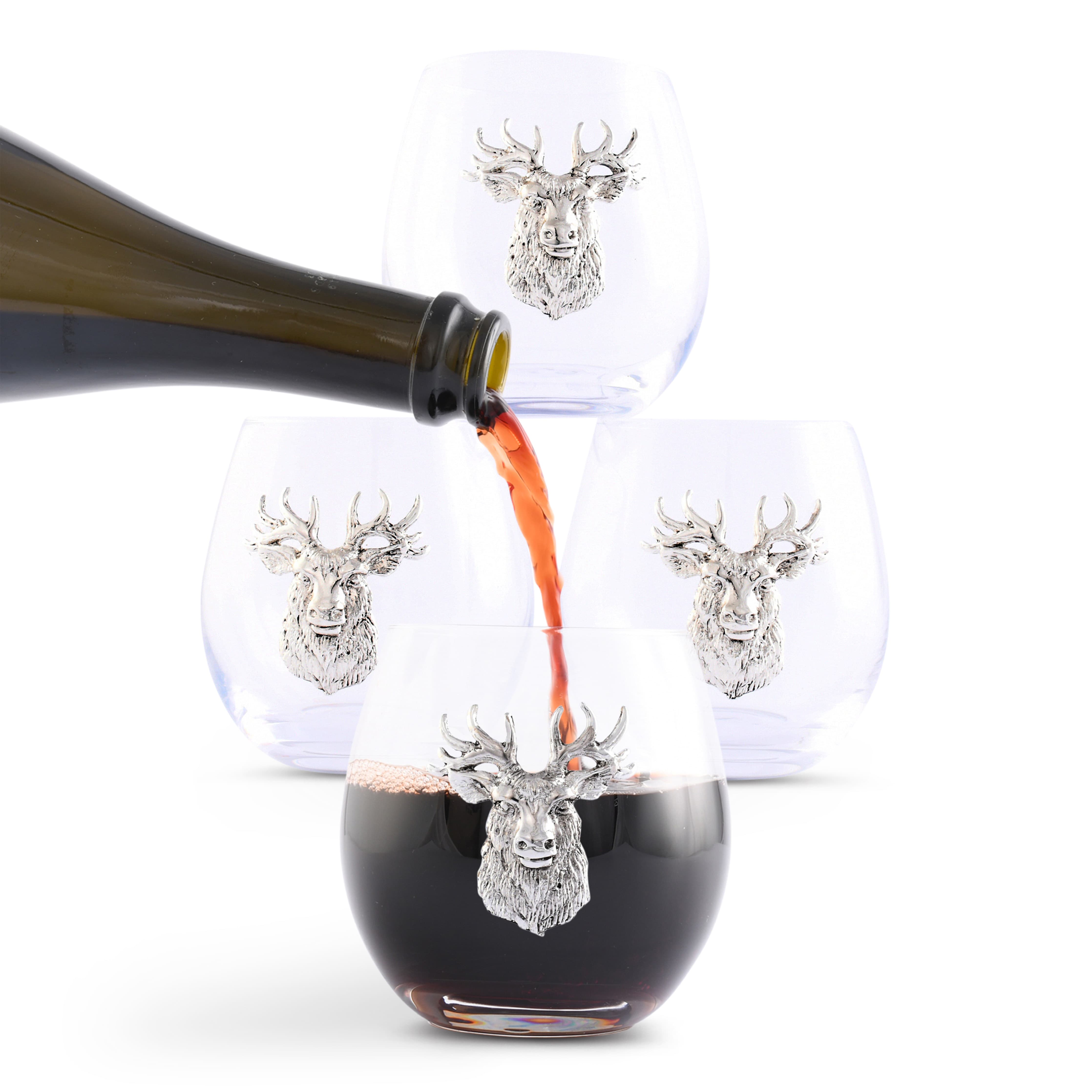 Elk Head Stemless Wine Glasses - Set of 4