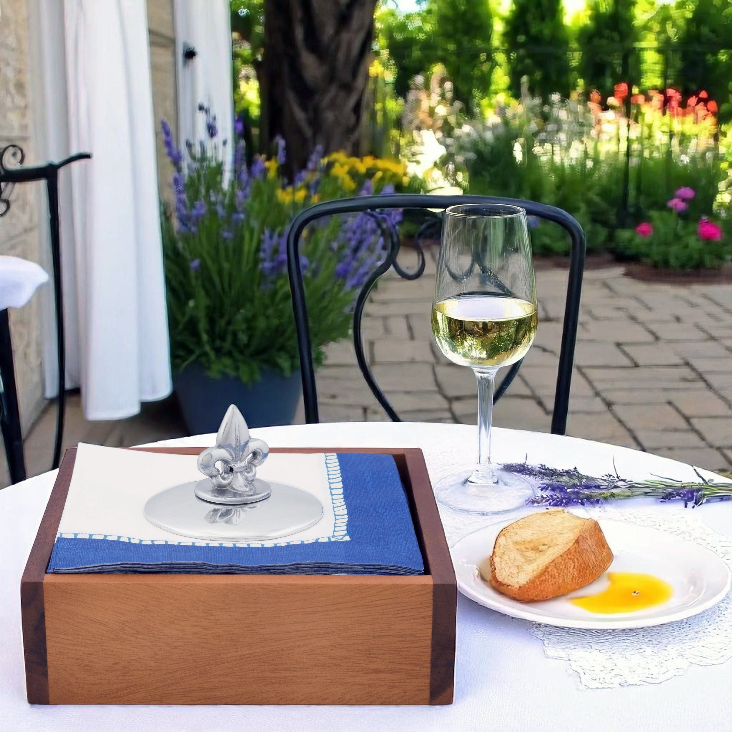 Experience unrivaled elegance at your outdoor events with our Exquisite Napkin Weight for Outdoor Entertaining and Breezy Environments. Perfectly suited for alfresco dining, Arthur Court's Fleur De Lis Napkin Weight is not only a charming accent piece but a functional one as well. Handcrafted delicately from premium aluminum, the Fleur De Lis Disk ensures your napkins are secure even in the breeziest of settings. Its intricate design showcases exceptional craftsmanship and introduces a touch of sophistication to any setting. Versatile and stylish, Arthur Court's Napkin Weight is your perfect companion for outdoor entertaining.