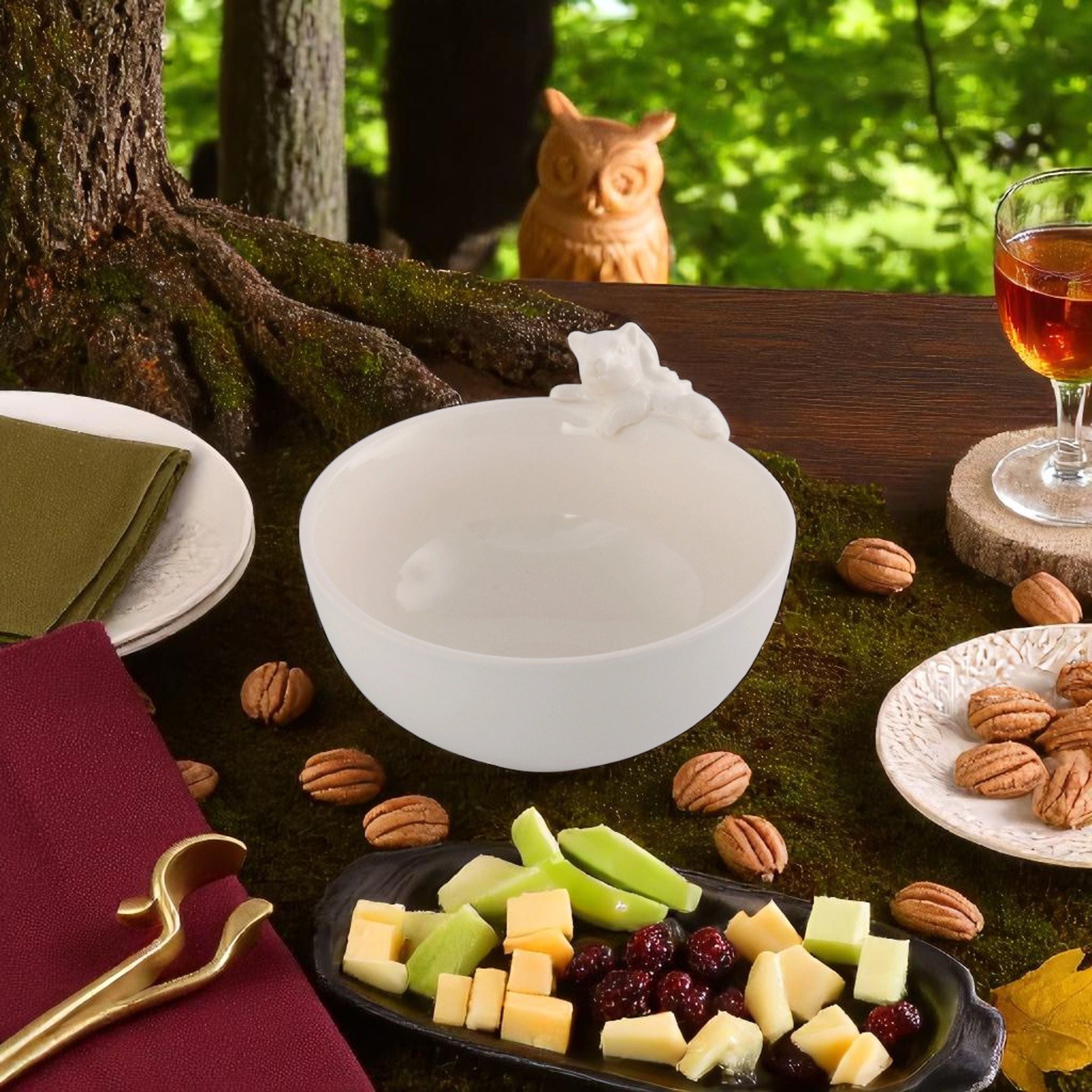 Our Cute animal design bowl for special occasions is designed to bring charm and elegance to your gatherings. Carefully crafted from our exclusive Forest Collection stoneware, this bowl is perfect for elegant parties and cozy gatherings alike. Each piece portrays delicate animal details and is inspired by the beauty of nature, making them an excellent choice for any special event. Handcrafted with utmost precision, this bowl's superior quality, and unique design is noticeable to the touch and sight. Its versatility goes beyond serving, as it can also be an impactful centerpiece. Gift this bowl to show your thoughtful taste.